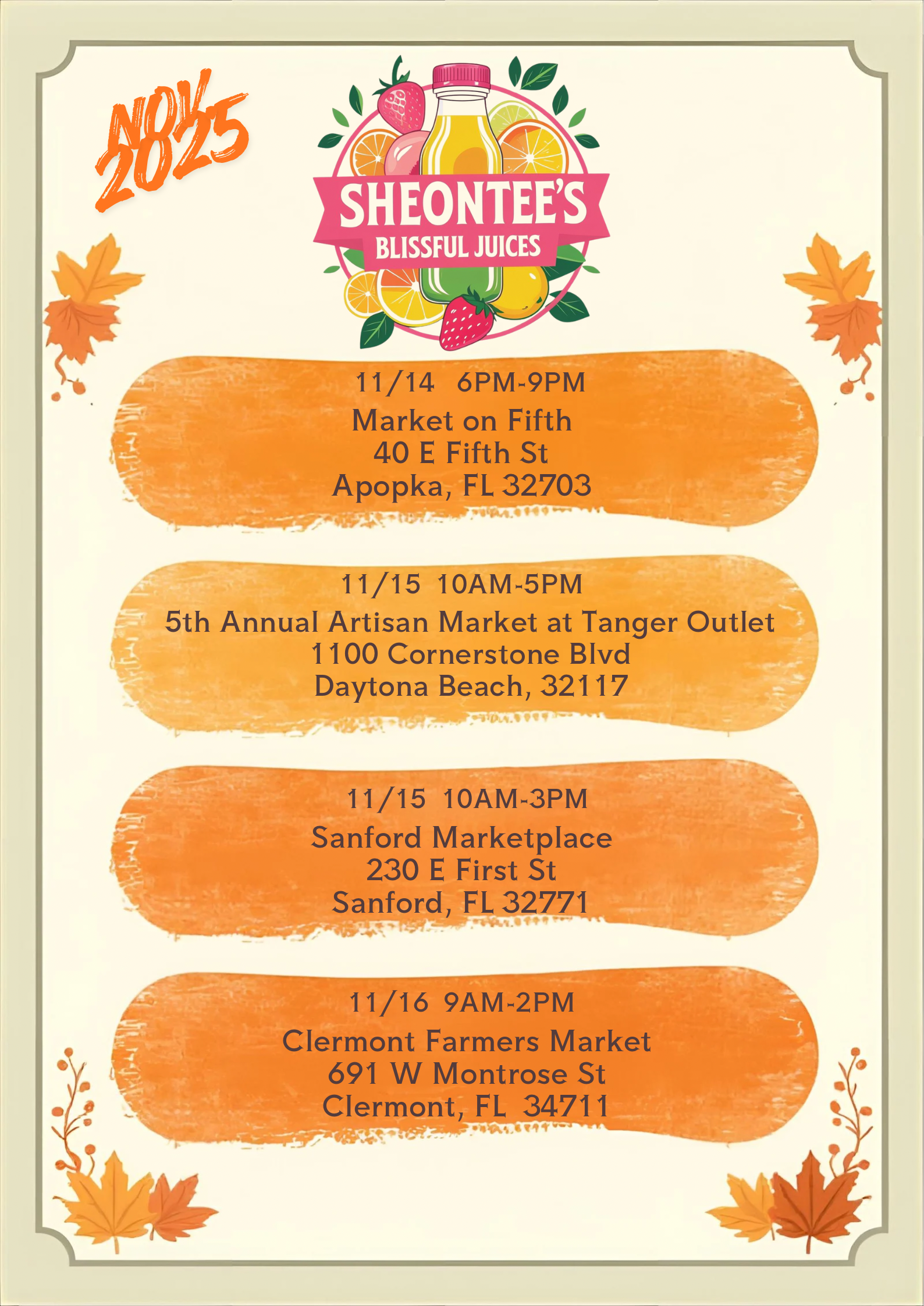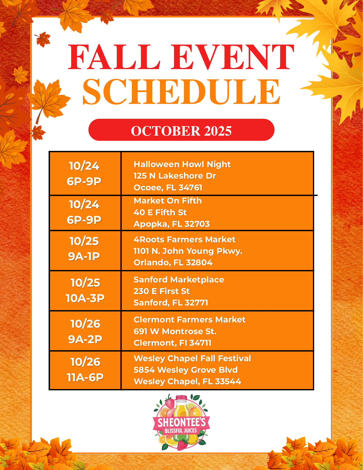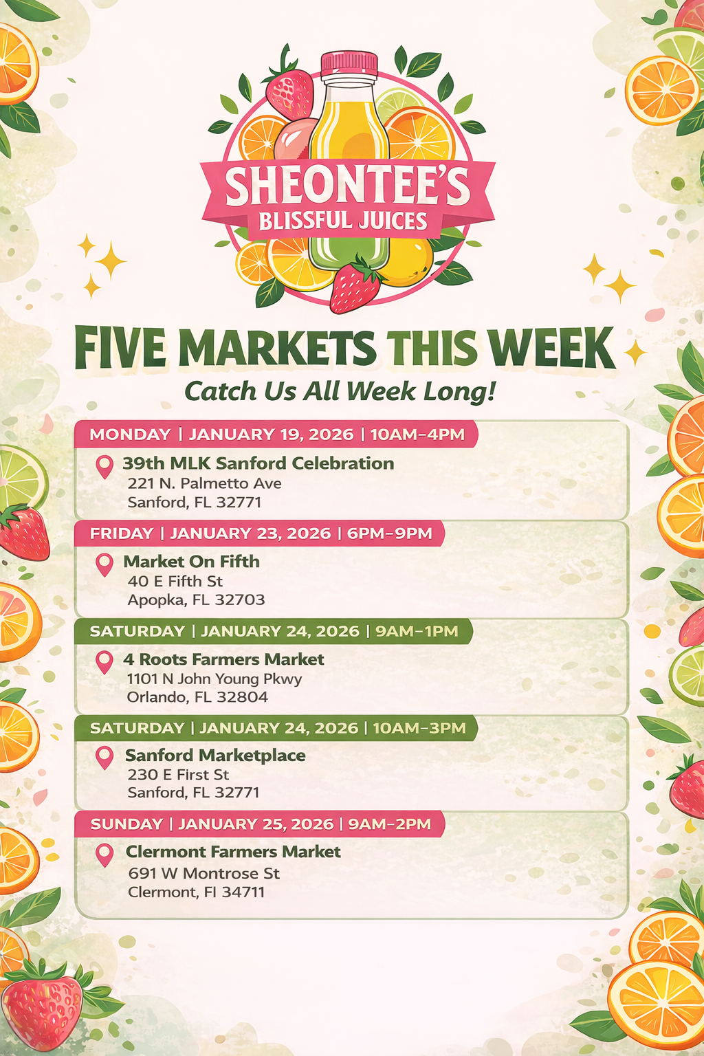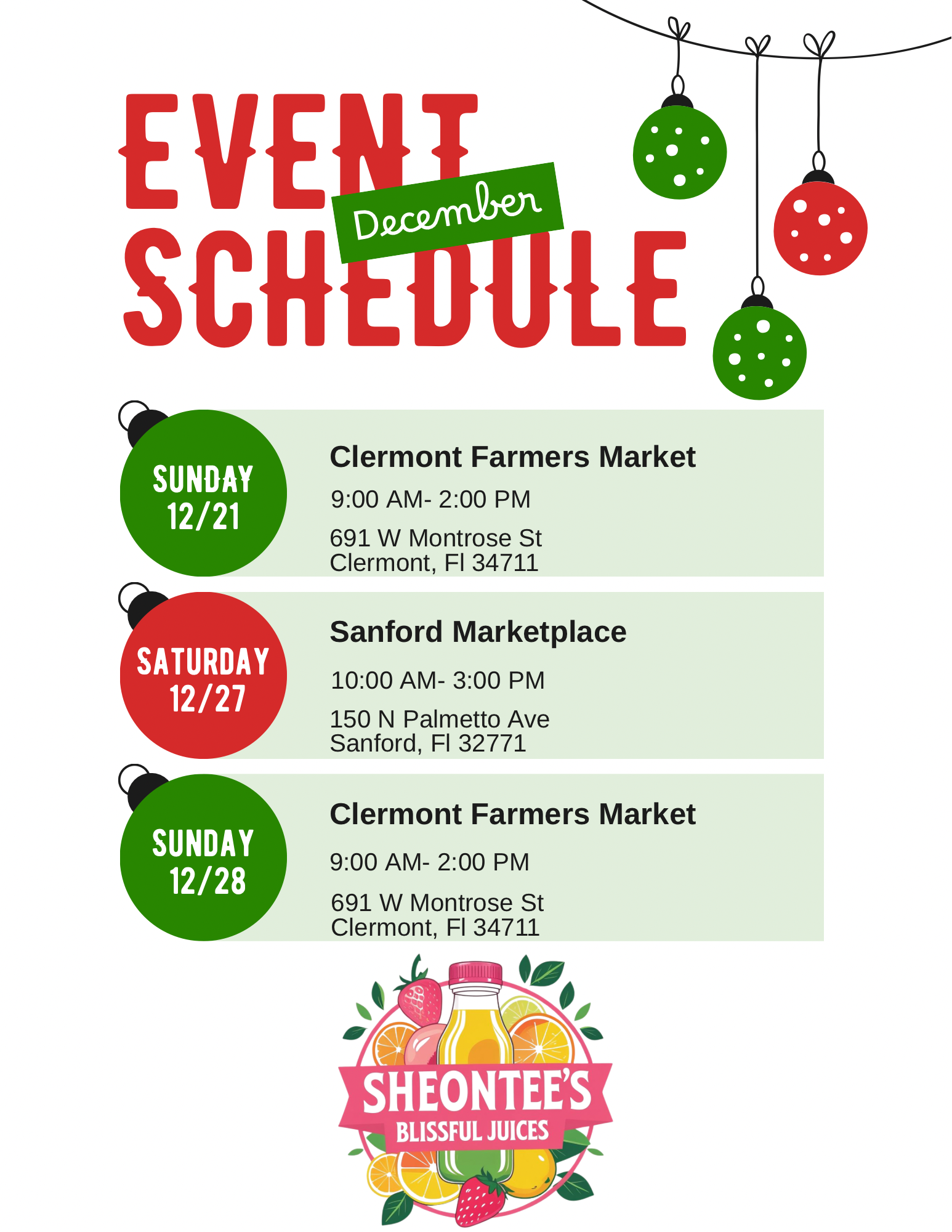 Shop All Natural Cold Pressed JuicesEvent Schedule: